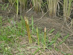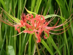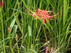 夏休みの終わりから、今か、今かと「定点観測地」で待ち受けていたが、どうもまだようである。遅れているのだろうか。なぜだろ、例年にない残暑がきびしいからであろうか。それとも雨が少ないからであろうか。待ちきれずに「定点」を離れて、朝の散歩道にさがした。02/09/07