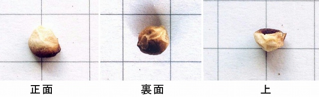 今週の最終送信です。その種子(?)を正面、裏面、上から撮った写真です。これぞ粃