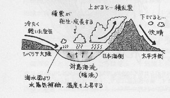 に強い季節風が吹くのです.この季節風は,日本海を渡るとき,日本海の水蒸