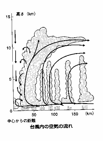から空気が押しよせ、うず巻きははげしくなり、また水蒸気を吸いこむ。こうしてうず巻きはますま